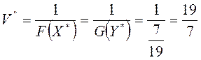 Решив симплекс методом матрицу мы получим X* = (3/19; 4/19; 0) Y* = (4/19; 3/19; 0) F(X* ) = G(Y* ) = 7/19 Из решения двойственных задач получим цену игры и оптимальные стратегии игроков для матрицы А**