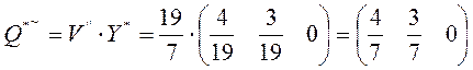 Для матрицы А* оптимальный план остается такой же V = V” – С = 19/7 – 2 = 5/7 Оптимальная стратегия P* и Q* получаются из оптимальных стратегий P*~ и Q*~ приписав нули на место удаленных строк и столбцов.