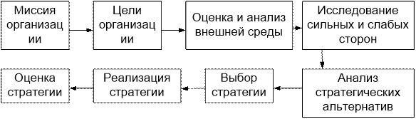 Стратегическое планирование Стратегическое планирование маркетинга представляет собой набор действий и решений, предпринятых руководством, которые ведут к разработке специфических стратегий, предназначенных для того, чтобы помочь организации достичь своих целей на рынке. Процесс стратегического планирования является инструментом, помогающим в принятии управленческих решений. Его задача - обеспечить нововведения и изменения в организации в достаточной степени. Точнее говоря, существуют четыре основных вида управленческой деятельности в рамках процесса стратегического планирования. К ним относятся: распределение ресурсов, адаптация к внешней среде, внутренняя координация и организационное стратегическое предвидение. Стратегия представляет собой детальный всесторонний комплексный план, предназначенный для того, чтобы обеспечить осуществление миссии организации и достижение ее целей. Несколько основных тезисов, относящихся к стратегии, должны быть поняты и, что более важно, приняты высшим руководством. Прежде всего, стратегия большей частью формулируется и разрабатывается высшим руководством, но ее реализация предусматривает участие всех уровней управления. Стратегический план должен обосновываться обширными исследованиями и фактическими данными. Чтобы эффективно конкурировать в сегодняшнем мире бизнеса, фирма должна постоянно заниматься сбором огромного количество информации об отрасли, рынке, конкуренции и других факторах. Стратегический план придает фирме определенность, индивидуальность, что позволяет ей привлекать определенные типы работников, и, в то же время, не привлекать работников других типов. Этот план открывает перспективу для организации, которая направляет ее сотрудников, привлекает новых работников и помогает продавать изделия или услуги. Наконец, стратегические планы должны быть разработаны как, чтобы не только оставаться целостными в течение длительных периодов времени, но и быть достаточно гибкими, чтобы при необходимости можно быть осуществить их модификацию и переориентацию. Стратегический план маркетинговой деятельности может включать следующие разделы: - продуктовый план (что и в какое время будет выпускаться) - исследования и разработки новых продуктов - план сбыта – повышение эффективности сбыта (численность, оснащенность новой современной техникой, обучение сотрудников сбытовых служб, стимулирование их работы, выбор их территориальной структуры) - план рекламной работы и стимулирования продаж - план функционирования каналов распределения (тип и число каналов, управление этими каналами) - план цен, включая изменение цен в будущем - план маркетинговых исследований - план функционирования физической системы распределения (хранение и доставка товаров потребителям) - план организации маркетинга (совершенствование работы отдела маркетинга, его информационной системы, связь с другими подразделениями организации) Общий стратегический план следует рассматривать как программу, которая направляет деятельность фирмы в течение продолжительного периода времени, давая себе отчет в том, что конфликтная и постоянно меняющаяся деловая и социальная обстановка делает постоянные корректировки неизбежными. Процесс стратегического планирования.