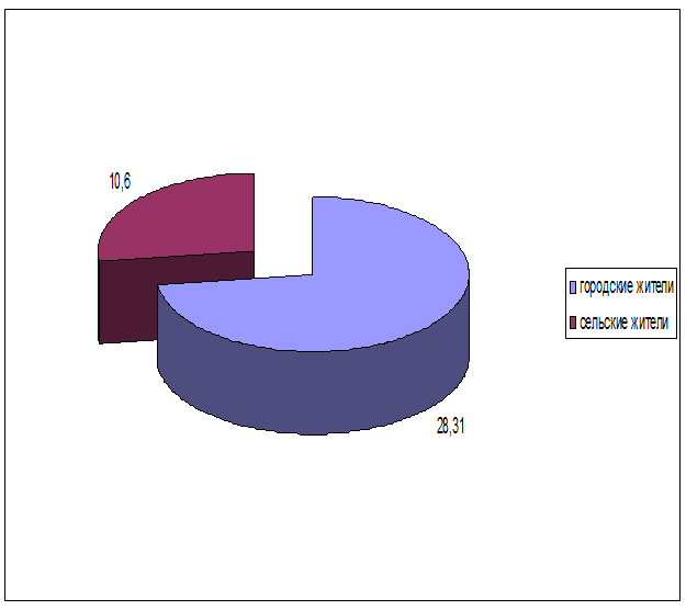 Вывод: По показателям заболеваемости дизентерией в Тульской области самыми неблагополучными являются МТО Т -50 и Киреевский район. 2.2. По соотношению городского и сельского населения. Городские жители – 28,31 Сельские жители – 10,6