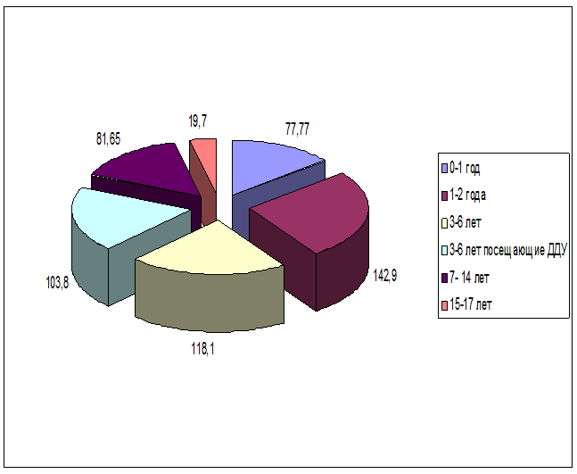 Вывод: По данным проведенного анализа дети болеют в 3 раза чаще взрослых. 2.4. Среди детского населения.