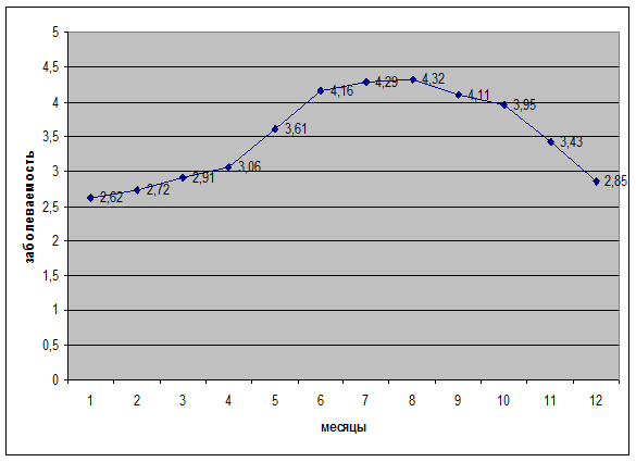 График 4: Типовая кривая внутригодовой заболеваемости дизентерией.