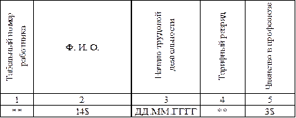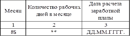 Данная промежуточная форма 2 «Расчетно-платежная ведомость» заключает в себе следующие данные: первые три верхние строки с данными о месяце начисления заработной платы, формат данных – текстовое значение максимальной длинной 8 символов; о дате расчета заработной платы, формат данных – дата; о количестве рабочих дней в месяце – числовое значение не более 2 знаков. Также данная таблица содержит в себе 15 столбцов для расчета заработной платы. В первом столбце указывается табельный номер работника, формат данных – число макс. длинной 2 знака. Во втором столбце указывается Ф.И.О. работника, формат данных – текстовое значение не более 14 символов. В третьем столбце отражается тарифный разряд работника, формат данных – число, содержащее не более 2 знаков (от 1 до 18). В четвертом столбце указывается тарифный коэффициент работника, формат данных - вещественные числовые значения (один знак в целой части и два в дробной). В пятом столбце отражается трудовой стаж работника, формат данных - вещественные числовые значения (два знака в целой части и один в дробной). В шестом столбце указывается процент оплаты больничного листа работника, формат данных – числовое значение не более 3 знаков. В седьмом столбце отражается оклад работника (размер мин. заработной платы * тарифный коэффициент работника), формат данных – число максимальной длинной 4знака. В восьмом столбце отражается начисленная заработная плата работника за данный месяц (заработная плата / кол-во рабочих дней в месяце * кол-во отработанных дней в месяце), формат данных – вещественное числовое значение (четыре знака в целой части и один в дробной). Девятый столбец показывает, сколько работнику начислено по больничному листу (заработная плата / кол-во рабочих дней в месяце * количество дней по больничному листу), формат данных – вещественное числовое значение (четыре знака в целой части и один в дробной). Десятый столбец показывает итого начислено по зарплате и больничному листу (заработная плата + начислено по больничному листу), формат данных - вещественное числовое значение (четыре знака в целой части и два в дробной). Одиннадцатый столбец показывает, сколько работнику было выдано авансов в счет зарплаты, формат данных - вещественное числовое значение (четыре знака в целой части и один в дробной). Двенадцатый столбец отражает удержанный подоходный налог с работника (высчитывается - 13% от зарплаты), формат данных - вещественное числовое значение (три знака в целой части и один в дробной). В тринадцатом столбце отражаются профсоюзные взносы (1% от зарплаты), если работник включен в профсоюзное членство (см. Справочник 4), формат данных - вещественное числовое значение (два знака в целой части и два в дробной). В четырнадцатом столбце отражается итого удержано (выданный аванс + подоходный налог + профсоюзный взнос), формат данных - вещественное числовое значение (четыре знака в целой части и один в дробной). И, наконец, пятнадцатый столбец показывает, сколько денежных средств подлежит выдаче в конце месяца работнику. Теперь мы должны на основании вышеизложенного составить две выходные формы: «Расчетный лист заработной платы работников» и «Платежную ведомость». Выходная форма 1. «Расчетный лист заработной платы работников»