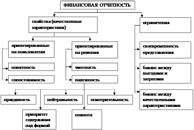 Надежность раскрывается пятью характеристиками: · правдивым представлением (информация считается существенной, если ее отсутствие или искажение может повлиять на экономические решения в отношении отчитывающейся компании); · представлением информации об операциях и событиях в соответствии с их сущностью и экономической реальностью, а не только юридической формой; · нейтральностью; · осмотрительностью – определенная степень осторожности в условиях неопределенности, чтобы активы и доходы не были завышены, а обязательства и расходы – занижены; · полнотой – информация в финансовой отчетности должна быть полной с учетом существенности и затрат на нее. Наряду с раскрытием принципов уместности и надежности в МСФО определяются ограничения в их использовании, в числе которых: · своевременность – в случае неоправданной задержки информации она может потерять свою уместность. Преждевременная информация не отражает операций, возникших после ее составления. Так теряется полнота и надежность; · превышение выгодами затрат; · баланс между качественными характеристиками. Исходя из требования существенности следует иметь в виду, что отдельные показатели, которые недостаточно существенны для того, чтобы требовалось их отдельное представление в бухгалтерском балансе и отчете о прибылях и убытках, могут быть достаточно существенными, чтобы представляться обособленно в пояснениях к бухгалтерскому балансу и отчету о прибылях и убытках. В отчете о прибылях и убытках показатели, приведенные в разделе «расшифровка отдельных прибылей или убытков» образца формы, организации могут представлять в виде расшифровок к соответствующим им статьям отчета («в том числе» или «из них»). Отдельные показатели, включенные в приложение к бухгалтерскому балансу согласно образцу формы, могут представляться в виде самостоятельных форм бухгалтерской отчетности или включаться в пояснительную записку. Таким образом, показатели об отдельных видах активов, обязательств, доходов, расходов и хозяйственных операций могут приводиться в бухгалтерском балансе или отчете о прибылях и убытках общей суммой с раскрытием в пояснениях к бухгалтерскому балансу и отчету о прибылях и убытках, если каждый из этих показателей в отдельности несущественен для оценки заинтересованным пользователям финансовой отчетности организации или финансовых результатах ее деятельности. При составлении и предоставлении бухгалтерской отчетности необходимо руководствоваться Законом «О бухгалтерском учете», Положением по ведению бухгалтерского учета и бухгалтерской отчетности в российской Федерации (Приказ Минфина РФ №34н), ПБУ 4/99 и иными положениями по бухгалтерскому учету, Планом счетов бухгалтерского учета финансово-хозяйственной деятельности предприятий и инструкцией по применению Плана счетов, отдельными рекомендациями и указаниями, регламентирующими вопросы составления бухгалтерской отчетности, утвержденными Минфином РФ. 1.3 Этапы формирования годовой бухгалтерской отчетности Формирование и представление финансовой отчетной информации осуществляется в несколько этапов[3] . Первый этап – формирование учетной политики. Учетная политика – принятая организацией совокупность способов ведения бухгалтерского учета – первичного наблюдения, стоимостного изме