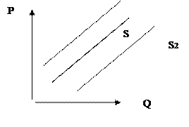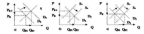 . На рис. 2.10 б) сдвиг линии предложения влево ведет к повышению равновесной цены при одновременном сокращении равновесного объема.