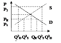. Изменение цены в указанном диапазоне недостаточно чувствительно, чтобы вызвать у потребителей изменение объема спроса, а у производителей – изменение объема предложения. На рис.2.3 в) кривые спроса и предложения также имеют общий отрезок: в этом случае равновесие устанавливается при любом объеме в интервале от Q1