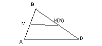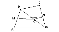 ![]() ![]() ![]() Рис. 3 1) Выделим для начала частный случай, который можно легко решить. В данном случае будет удобно, если одну из сторон четырехугольника стянуть в точку (рис. 3б). Тогда пусть BC стягивается в точку В. В таком положении точка N совпадает с серединой К отрезка BD, и MN становится средней линией MK треугольника ABD. Таким образом исходная задача сводится к следующей: что больше, половина стороны AD треугольника ABD или отрезок MK, соединяющий середины двух других сторон. По определению средней линии треугольника ответ очевиден: MK= 2) Теперь рассмотрим общий случай (Рис. 3в). Задача будет легко решена, если его свести к уже решенному частному случаю. Пусть K – середина диагонали BDчетырехугольника ABCD. Из рассмотренного частного случая имеем: в треугольнике ABDMK=