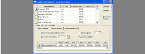 Рис.3.9. Вкладка "Сырье и материалы" раздела "Операционный план". Составляется план по персоналу по функциональным направлениям, устанавливается размер оплаты труда и периодичность выплат (рис.3.10):