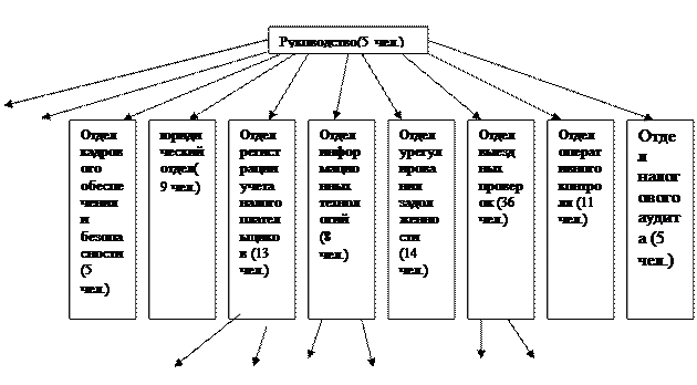 Введение Налоги являются необходимым звеном экономических отношений в обществе с момента возникновения государства. Развитие и изменение форм государственного устройства всегда сопровождаются преобразованием налоговой системы. В современном цивилизованном обществе налоги — основная форма доходов государства. С помощью налогов определяются взаимоотношения предпринимателей, предприятий всех форм собственности с государственными и местными бюджетами, с банками, а также с вышестоящими организациями. При помощи налогов регулируется внешнеэкономическая деятельность, включая привлечение иностранных инвестиций, формируется хозрасчетный доход и прибыль предприятия. Помимо этой сугубо финансовой функции налоговый механизм используется для экономического воздействия государства на общественное производство, его динамику и структуру, на состояние научно-технического прогресса. Федеральная налоговая служба и ее территориальные органы – управления Службы по субъектам РФ, межрегиональные инспекции Службы, инспекции службы по районам, районам в городах, городам без районного деления, инспекции Службы межрайонного уровня составляют единую централизованную систему налоговых органов. Цель производственной практики – закрепление теоретических знаний, полученных в процессе обучения, применение их в хозяйственной практике, изучение опыта работы налоговых органов, систем налогообложения хозяйствующих субъектов, овладение профессиональными приемами и методами работы, обобщение экономической информации. Задачи производственной практики: - изучение инструкций, положений, которые используются в практической деятельности предприятий и налоговых органов; - получение практических навыков сбора и анализа фактических данных производственной деятельности предприятий и его структурных подразделений; - ознакомление с формами и методами работы налоговых органов и налоговых отделов организации. Объектом прохождения практики является Межрайонная инспекция Федеральной налоговой службы №8 по Ставропольскому краю. 1 Организационная характеристика Межрайонной инспекции Федеральной налоговой службы №8 по Ставропольскому краю Межрайонная инспекция Федеральной налоговой службы №8 по Ставропольскому краю (далее – Инспекция) является территориальным органом Федеральной налоговой службы (далее – ФНС России) и входит в единую централизованную систему налоговых органов. Инспекция находится в непосредственном подчинении УФНС России по Ставропольскому краю (далее – Управление) и подконтрольна ФНС России и Управлению. Инспекция имеет сокращенное наименование: Межрайонная ИФНС России №8 по Ставропольскому краю. Инспекция является территориальным органом, осуществляющим функции по контролю и надзору за соблюдением законодательства о налогах и сборах, за правильностью исчисления, полнотой и своевременностью внесения в соответствующий бюджет налогов и сборов, в случаях, предусмотренных законодательством Российской Федерации, за правильностью исчисления, полнотой и своевременностью внесения в соответствующий бюджет иных обязательных платежей, а также ха производством и оборотом этилового спирта, спиртосодержащей, алкогольной и табачной продукции и за соблюдением валютного законодательства Российской Федерац