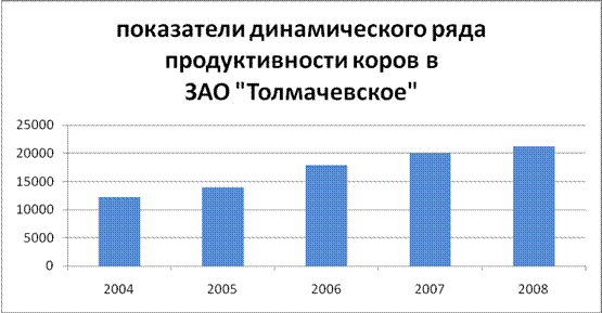 Таблица 8. Расчёт показателей динамического ряда продуктивности коров в ЗАО «Толмачевское».