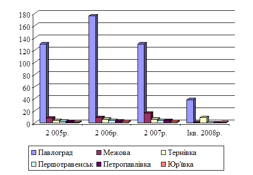 Рисунок 2.3.- Динаміка споживчих кредитів за 2005- І кв.2008 років. Павлоградська філія ХК Банк співпрацює з такими великими торгівельними комплексами та магазинами як “Олімпія”, “Пінфок”, “Мобільний світ”. У ХК Банк найнижчі відсоткові ставки, розвинута єквайрінгова мережа. Є такий унікальний продукт, як кредитні картки на купівлю товару у розстрочку. Кількість випущених кредитних карток у 2004 році становила 50 000 карток. Висновок Філія “ХК Банк в м. Павлоград Дніпропетровської області ”є відокремленим структурним підрозділом ЗАТ «ХК Банк» (далі-Банк),створеним відповідно до спільного рішення Спостережної Ради та Правління ХК Банку (закрите акціонерне товариство) від 23 травня 2002 року. Філія не є юридичною особою і здійснює свою діяльність від імені Банку та в межах повноважень, наданих їй Банком, підпорядковується Правлінню та Голові Правління Банку. Філія діє на підставі Положення про філію та письмового Дозволу на виконання банківських та інших операцій, наданих Банком. У своїй діяльності керується Законом України «Про банки і банківську діяльність», іншими законами України, Постановами Верховної Ради та Кабінету Міністрів України, нормативно-правовими актами Національного банку України, Статутом та іншими нормативними документами Банку. Основними завданнями Філії є: здійснення на договірних засадах обслуговування юридичних та фізичних осіб; забезпечення мобілізації і раціонального розміщення фінансових ресурсів у регіоні для задоволення потреб Клієнтів та досягнення позитивних результатів комерційної діяльності Банку і Філії; сприяння розвитку та зміцненню матеріально-технічної бази Філії та її підвідомчих структур, вирішення питань соціально-побутового забезпечення працюючого персоналу. Філія здійснює такі банківські та інші операції: приймання вкладів (депозитів) від юридичних і фізичних осіб; відкриття та ведення поточних рахунків клієнтів і банків-кореспондентів, у тому числі переказ грошових коштів з цих рахунків за допомогою платіжних інструментів та зарахування коштів на них; розміщення залучених коштів від свого імені, на власних умовах та на власний ризик, в частині розміщення залучених коштів в національній валюті (надання кредитів) на умовах, визначених Банком; лізинг; випуск, купівлю, продаж і обслуговування чеків, векселів та інших оборотних платіжних інструментів, в частині купівлі, продажу обслуговування чеків, обслуговування векселів та інших оборотних платіжних інструментів; випуск банківських платіжних карток і здійснення операцій з використанням цих карток; надання консультаційних та інформаційних послуг щодо банківських операцій; операції з валютними цінностями: а)неторговельні операції з валютними цінностями, б)ведення рахунків клієнтів (резидентів та нерезидентів) в іноземній валюті та клієнтів-нерезидентів у грошовій одиниці України, в)залучення та розміщення іноземної валюти на валютному ринку України, в частині залучення депозитів та надання кредитів в іноземній валюті на валютному ринку України на умовах, визначених Банком, г)операції з банківськими металами на валютному ринку України, в частині купівлі та продажу банківських металів юридичними та фізичними особами; організація купівлі та продажу цінних паперів за дорученням клієнтів; перевезення валютних ціннос