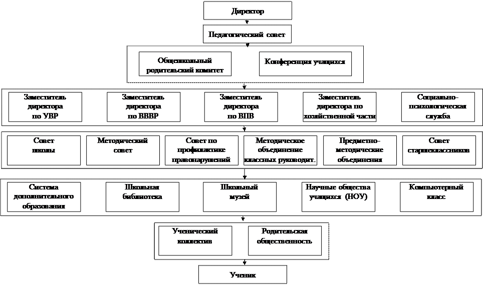 Рисунок 2.3 - Декомпозиция комплекса задач На данный момент времени существуют формы отчетности, которые создаются для хранения и использования информации в школе, а также для предоставления в районный отдел образования. 2.8 Анализ аналогов и прототипов предлагаемой информационной системы В качестве аналога была рассмотрена ИС Петрозаводского государственного университета, РЦ НИТ. В Петрозаводском университете локальная сеть включает автоматизированные рабочие места руководителей и сотрудников учебного комплекса ("Абитуриент", "Деканат", "Учебный отдел", "Ректорат"), научно-исследовательского ("Научная часть", "Экономист НИСа"), административно-хозяйственного ("Канцелярия", "Кадры", "Международный отдел", "Социальный маркетинг"), финансового ("Учет и начисление заработной платы", "Почасовик", "Учет финансово - расчетных операций"). На каждом рабочем месте пользователям кроме функций конкретного АРМ предоставлены возможности, реализуемые сетевым программным обеспечением, с выходом в Российскую образовательную сеть RUNNet и глобальные сети (Internet). На серверах ЛВС наряду с внутривузовскими базами данных установлена и доступна пользователям база "Законодательство и нормативные документы высшей школы России", которая обеспечивает правовую поддержку принимаемых управленческих решений. Использование АРМ, работающих в сети, позволило: - в определенной степени автоматизировать делопроизводство в университете; - обеспечить автоматизацию функций, связанных с учетом и анализом состава контингента абитуриентов, студентов, преподавателей и сотрудников вуза; - формировать приказы, распоряжения на зачисление, отчисление, начисление стипендий, переводы студентов, приказы о приеме на работу, увольнении, изменении окладов, переизбрании, предоставлении отпусков преподавателям и сотрудникам и т.д. Применение в организационной деятельности сетевых технологий создало возможность: - для улучшения качества принимаемых решений за счет быстрого согласования работ, выполняемых различными службами, и оперативного обмена информацией с внешними организациями. Разработанные в Петрозаводском университете АРМ переданы и успешно эксплуатируются в десятках учебных заведений страны, в том числе в Карельском пединституте и учебно-образовательных учреждениях Карелии, занимающихся послевузовской профессиональной подготовкой. В настоящее время Университетом разработано информационное обеспечение двух уровней управления системой образования Карелии: АРМ "Директор (завуч) школы" и АРМ "Инспектор отдела управления образования". АРМ "Директор школы" предназначен для информационного обеспечения принятия управленческих решений на уровне руководства школы. В постановке задач принимали участие директора школ г. Петрозаводска. АРМ "Директор школы" позволяет решать задачи: - накопления и обработки информации об учащихся, их родителях, учителях и сотрудниках школы; - составления учебных планов, составления расписания (в режиме диалога), ведения журналов успеваемости; - подготовки текстовых списков и финансовых документов и справок, формирования документов для проведения тарификации и др. АРМ "Директор школы" сертифицирован Министерством образования России и зарегистрирована в российском фонде компьютерных программ Министерства образования России. 