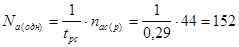 где Pос – осевая нагрузка на шарошечное долото, кН; nоб – скорость вращения долота, об/мин; Тсмн = 7 ч – длительность рабочей смены бурового станка; Ки = 0,44-0,6 – коэффициент использования бурового станка во времени; nсмн = 2 – количество рабочих смен бурового станка в сутки; nдн = 247-259 дн. – число рабочих дней бурового станка в календарном году; Пб = f – показатель трудности бурения пород; dскв – диаметр скважин, см. Необходимое количество рабочих буровых станков