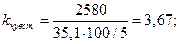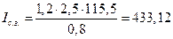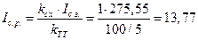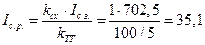Кратность расчетного тока срабатывания к номинальному току трансформатора тока составит: