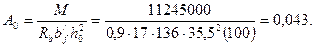 Характеристика сжатой зоны: ω=0,85-0,008Rb =0,85-0,008·0,9·17=0,73. Граничная высота сжатой зоны