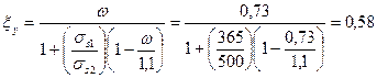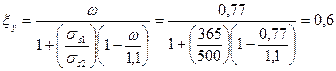 Характеристика сжатой зоны: ω=0,85-0,008Rb =0,85-0,008·0,9·11,5=0,77, σ1 =Rs =365 МПа.
