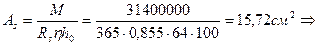 η=1,15- для арматуры класса А-V; принимаем Вычисляем площадь сечения растянутой арматуры: