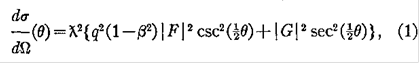 Согласие можно считать хорошим, особенно в случае высоких энергий. Некоторое несоответствие, увеличивающееся с уменьшением энергии, возможно, отчасти связано с тем, что при вычислениях трудно учесть экранирование. В качестве других опытов, которые очень хорошо согласуются с теорией, следует упомянуть наблюдения, проведенные Петтусом [40] и Нельсоном и Пиддом [41]. 5.ЭКСПЕРИМЕНАЛЬНАЯ РАБОТА ШЕРМАНА Теория электронов Дирака была применена Moттом к рассеянию электронов ядрами, чтобы исследовать возможные эффекты поляризации в двойных экспериментах рассеяния. Теоретические результаты для ожидаемой поляризации и для дифференциальных поперечных сечений рассеяния медленно вовлекают в условно сходящиеся ряды, которые не поддаются легкому вычислению. Moтт вычислил результаты для золота (Z=79) в 90 градусах. Барлет и Ватсон суммировали ряд в цифровой форме для ртутных ядер (Z=80) по диапазону углов и энергий. Позже, другие исследователи выполнили числовые вычисления. В работе Шермана ряд Moтта, поляризация, и дифференциальное поперечное сечение рассеяния оценены для рассеяния электронов ядрами заряда Z=80, 48, и 13, в энергиях, данных отношением электронной скорости, чтобы осветить скорость, Формулы, которыми пользовался в своих расчетах Шерман, имеют следующий вид: Отличительное поперечное сечение для неполяризованного луча электронов, рассеянных через угол