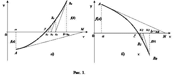 Рис Соединим точку А1 (x1 ; f (x1 ) с точкой В (b; f (b)) и найдем х2 – точку пересечения хорды А1 В с осью Ох: