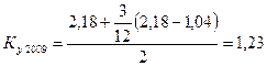 ![]() Коэффициент утраты платежеспособности определяется как отношение расчетного коэффициента текущей ликвидности к его установленному значению. Расчетный коэффициент текущей ликвидности определяется как сумма фактического значения этого коэффициента на конец отчетного периода и изменение этого коэффициента между окончанием и началом отчетного периода в пересчете на период утраты платежеспособности (3 месяца). Расчёт производится по формуле (2.3):