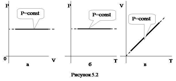 Графік цього процесу (рис. 4.3), представлений на діаграмах „P‑V”, „P‑T” або „V‑T”, - називається ізобарою .