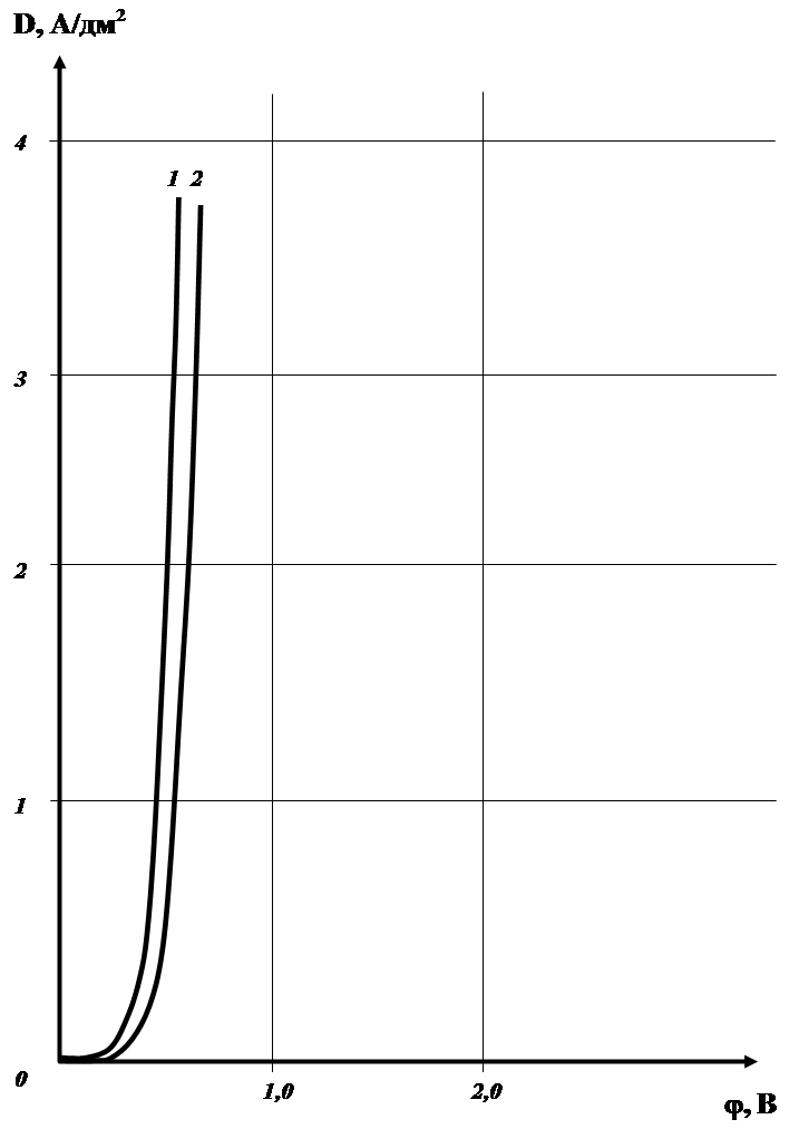плакат (схема электрофлотатора) Вода поступает через трубопровод 1, в анодную камеру, затем через перегородку в катодную камеру. Пена 5 поднимается вверх и сливается по наклонному желобу 6. Очищенная вода сливается через трубопровод 7. Взвешенные частицы, которые тяжелее воды, осаждаются и сливаются через штуцер 8. Электрофлотация выгодно отличается от традиционных методов благодаря высокой эффективности и простоте аппаратурно-технологического процесса. Электрофлотационный способ очистки гораздо дешевле реагентного. Финансовые затраты требуются только на потребление электричества. Так же он протекает намного быстрее отстаивания. Имеет более высокую степень очистки. Для определения возможности использования электрофлотатора для разделения осадка хрома в промывных водах гальванического цеха были проведены опыты со снятием вольт-амперных характеристик.