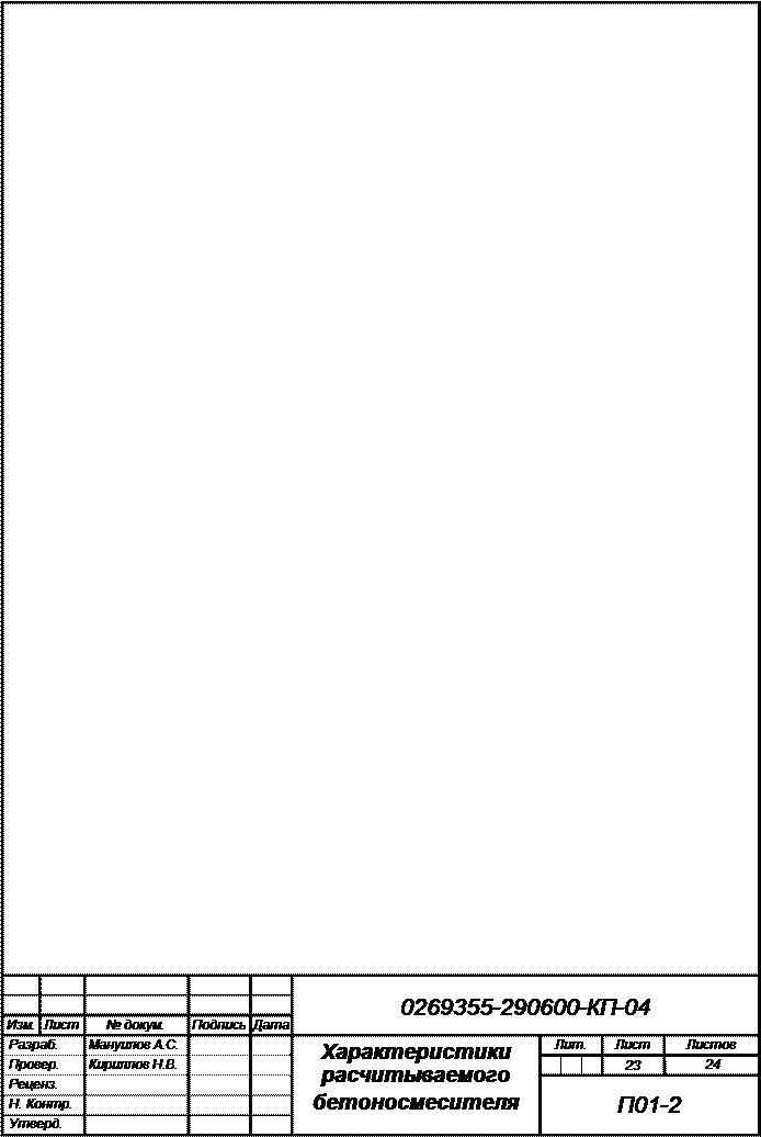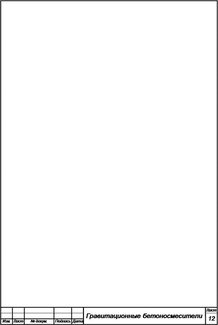 Содержание Введение…………………………………………………………………………………3 1.Гравитационные бетоносмесители………………………………………………….11 1.1. Бетоносмеситель СБ-103………………………………………………………...11 2. Расчётная часть………………………………………………………………………14 2.1. Определение производительности……………………………………………...14 2.2. Определение координат центра тяжести……………………………………….14 2.2.1.Определение координат центра тяжести отдельных частей и всего барабана (без бетонной смеси)…………………………………...14 2.2.2.Определение координат центров тяжести отдельных частей и всей бетонной смеси в барабане………………………………………...15 2.3. Определение усилий на опорных роликах………………………….………….20 2.4. Определение мощности электродвигателя привода…………………………...22 3. Характеристика расчитываемого бетоносмесителя…………………………....….23 Литература………………………………………………………………………………24