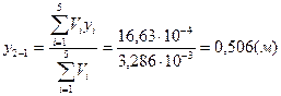 Объемы и центры тяжести бетонной смеси соответственно в коротком конусе барабана (V2-1 , x2-1 , y2-1 ) находятся графоаналитическим методом. Для этого конусная часть барабана вычерчивается в масштабе (рис. 4) и делится на произвольно взятые одинаковой длины 5 частей, а коническая поверхность полученных элементарных объемов заменяется усредненной цилиндрической. Радиусы
