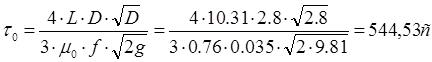 d=0,212 м – внутренний диаметр сливного патрубка.