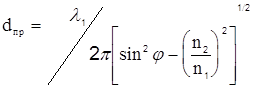 де З формули (3.2) легко бачити, що зі збільшенням По класичним рівнянням Френеля можна розрахувати величину послаблення коефіцієнта відбивання R, якщо використовувати для середовища 2 уявний показник заломлення . Спектральний розподіл так званого контраста спектра ППВВ=1 R несе інформацію про оптичне поглинання в середовищі 2 , що торкається призми ППВВ=1 , широко використовується для дослідження складу та інших характеристик середовищ ( плівок), осаджених на призму зв`язку. Метод ППВВ був вперше використаний для дослідження поверхневих плазмонів в металах у 1968 р. Потім було звернено увагу на можливості використання цього метода для вивчення поверхневих фононів. Методом ППВВ експериментально досліджувались спектри ПП в кубічних кристалах. В однорідних кристалах спектри ПП вивчено лиш для декількох орієнтацій поверхні. В нерадіаційній ділянці спектру моди поверхневих коливань в кристалах характеризуються тим, що вони не взаємодіють безпосередньо з падаючим світлом , бо їх дисперсійні криві лежать в такій області, де неиожливо одночасно виконати закони збереження енергії Наведені вище міркування показують, що закони збереження імпульсу та енергії, з одного боку, та вид дисперсійних кривих , з іншого, не протирічать одне одному лише в тому випадку, коли В експерименті вимірювався коефіцєнт відбивання електромагнітної хвилі, що падає на поверхню розподілу двох середовищ (призми та зазора), котра є площиною повного внутрішнього відбивання ( рис. 3.1). Наявність поглинаючого середовища (тобто кристала, в якому вивчався спектр поверхневих хвиль) призводить до зменшення інтенсивності відбитого світла. В зазорі між призмою та кристалом розповсюджується електромагнітна хвиля зі зменшеною фазовою швидкістю