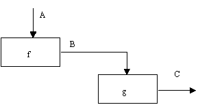 Рис. 2.11. Последовательная связность В математических терминах необходимое условие для простейшего типа функциональной связности, показанной на рисунке 2.12, имеет следующий вид: C = g(B) = g(f(A))Ниже в таблице представлены все типы связей, рассмотренные выше. Важно отметить, что уровни 4-6 устанавливают типы связностей, которые разработчики считают важнейшими для получения диаграмм хорошего качества.