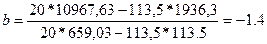 Звідси, підставивши отримані дані, обчислимо параметри лінійної регресії: