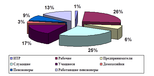 Рис. 1.1 Социальная структура выборочной совокупности респондентов Определим долю потенциальных пользователей косметических средств по уходу за кожей (см. рис.1.2).Нами установлено, что косметическими средствами по уходу за кожей не пользуются 16,8% людей, это в основном мужчины (9,5%). Но большинство людей предпочитают пользоваться косметическими средствами по уходу за кожей (83,2%). Далее потенциальных пользователей разобьем по полу, возрасту и семейному положению (см. рис.1.2 а, б). а) По возрасту