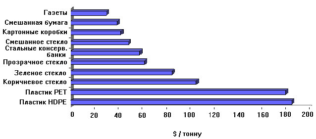 На Рис. 6 приведена типичная стоимость переработки вторсырья Рис. 6. Стоимость переработки вторсырья из муниципальных отходов на Западе