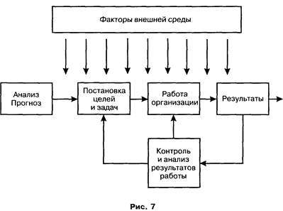 1.4. Внутренняя и внешняя среда организации Любая организация (фирма, промышленное производство, компания и т.д.) имеет свою внутреннюю среду и среду внешнюю, в которой осуществляются ее операции. Внутренняя среда организации формируется: • в соответствии с целями и задачами организации; • в соответствии с возможностями организации (финансовыми, материальными). Внутренняя среда определяется: • структурой организации (например, «снабжение—производство—финансы—отдел кадров—сбыт продукции»); • системой ее управления; • производственными технологическими процессами; • уровнем автоматизации, разделением труда, коммуникациями. К внешней среде организации относятся: • поставщики; • конкуренты; • покупатели (клиенты); • партнеры по бизнесу; • государство и его структуры; • культура, мораль, традиции; • профсоюзы; • экономические факторы; • политические факторы; • международное окружение. Первые пять факторов относят к внешней среде прямого воздействия, последние пять — к внешней среде косвенного воздействия. 1.5. Понятия «управление» и «менеджмент» Управление — это процесс распределения и движения ресурсов в организации с заранее заданной целью, по заранее разработанному плану и с непрерывным контролем результатов деятельности. Менеджмент — совокупность методов, принципов, средств и форм управления организациями с целью повышения эффективности их деятельности. Менеджмент предполагает управление не только формальными, но и неформальными организациями, образующимися и действующими спонтанно на основе личных связей, контактов, приятельских и семейных и других видов отношений. 1.6. Необходимые для управления организациями ресурсы К ресурсам, необходимым для управления организациями, относятся: • материальные ресурсы (земля, здания, помещения, оборудование, оргтехника, транспорт, коммуникации) и т.д.; • финансовые ресурсы (счета в банках, наличность, ценные бумаги, кредиты и т.д.); • людские ресурсы (персонал); • информационные ресурсы; • временные ресурсы. 1.7. Стратегическое управление организациями Стратегическое управление — управление, предполагающее, что в центре внимания руководства организации находятся факторы внутренней и внешней среды организации, ее окружения (поставщики, клиенты, конкуренты, государственные структуры, партнеры и т.д.). Стратегическое управление предусматривает планирование текущей деятельности организации для достижения желаемых результатов в будущем с учетом тенденции развития внешней среды. Стратегическое планирование включает в себя три основных этапа: • анализ внешней и внутренней среды; • формулировка миссии (смысла существования) и целей организации; • разработка стратегии(й). Стратегическое планирование, как правило, охватывает период длительностью более одного года. При определении стратегии руководство должно ответить на следующие основные вопросы: • какой бизнес следует прекратить; • какой бизнес целесообразно продолжить; • в какой надлежит перейти; • с каким бизнесом должно объединиться. Области разработки стратегий по М. Портеру: • лидерство в минимизации издержек производства (снижение цен и расширение доли рынка); • лидерство в новизне продукта и специализации производства (выход на новые сегменты рынка); • концентрация усилий фирмы на одном рыночном сегм