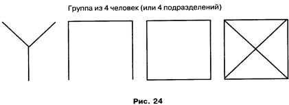 • косвенные (например, инспектор отдела кадров—начальник цеха или главный бухгалтер—начальник цеха; эти связи часто имеют место через «голову руководителя организации», вредят делу и не подкрепляются полномочиями); • формальные (связи координации, подкрепляемые принятыми в организации полномочиями, правилами, нормами и процедурами); • неформальные (на основе личных взаимоотношений, дружбы, родственных связей и т.д.). Часто в организации устанавливаются правила взаимодействий ее членов, например (рис.23, 24, 25):
