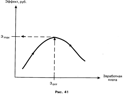Корпорация децентрализовала производственные операции по континентам (США, Европа, Азия, Центральная и Латинская Америка) а маркетинговые процессы (анализ рынков, реклама, сбыт, продвижение товара и т.д.) — по странам внутри континента. Страновые филиалы IBM имеют высокую степень автономии. Руководство каждого филиала возглавляется советом, в который входят преимущественно граждане данной страны и директор-иностранец, связанный со штаб-квартирой корпорации. В отношениях исследований, финансов, качества персонала филиал подчиняется штаб-квартире, а во всем остальном филиалы полностью самостоятельны. Они являются центрами прибыли, так как от них зависит в первую очередь продвижение товаров, сбыт и продажи, анализ спроса и рынков. От работы филиалов зависят политика и развитие корпорации. Анализ эффективности работы и прибылей филиалов заставляет корпорацию вовремя переключаться на новые разработки. Организации, «движимые рынком», требуют квалифицированной рабочей силы. Упор в подборе кадров делается на профессионализм и напористость. Из допущенных ошибок делаются не выводы, а извлекаются уроки. Телекоммуникационные средства связи и сети ЭВМ повышают оперативность управления транснациональной корпорацией. 5.1. Экономические и экономико-математические методы Экономические методы управления — это способы воздействия, имеющие в своей основе экономические отношения и экономические интересы людей. Экономические интересы делятся на четыре большие группы: • интересы государства; • интересы отрасли; • интересы коллектива (организации); • интересы личности. Между этими интересами всегда существуют диалектические противоречия. Искусство руководителей состоит в разрешении этих противоречий, поиске возможных компромиссов. Возможные экономические рычаги управления включают в себя: • себестоимость; • рентабельность; • прибыль; • фондоотдачу; • цену; • заработную плату и др. Один из важнейших экономических рычагов управления — заработная плата работников. Существует множество различных способов стимулирования труда. Все они дают тот или иной экономический эффект. Общая для всех оптимизационная кривая выглядит так, как показано на рис.41.