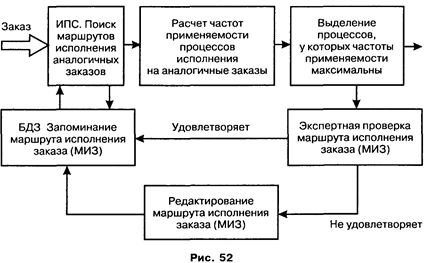 Из рис.51 следует, что у каждого процесса ФО может быть множество операций (трудовых действий). Например, процесс «закупочная деятельность»—ФО—«снабжение» включает в себя следующие действия-операции: «подготовка требования на закупку», «выбор поставщиков», «подготовка закупочных заказов», «осуществление заказа», «наблюдение за прохождением заказа» и т.д. Процесс «технологическое проектирование»—ФО—«проектирование узла N» может включать в себя унифицированные технологические операции, исполнение которых обеспечивает то или иное качество и стоимость конечного продукта. Наиболее актуальной проблемой в данном случае является нахождение эффективного (оптимального) маршрута исполнения заказа (МИЗ). Один из вариантов решения данной проблемы показан на рис.52.