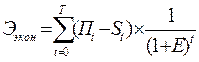 Сравнение различных инвестиционных проектов, выбор лучшего из них, обоснование размеров и форм государственной поддержки в данном случае производится путём расчёта интегрального экономического эффекта, получаемого в целом для страны по формуле 1.8: