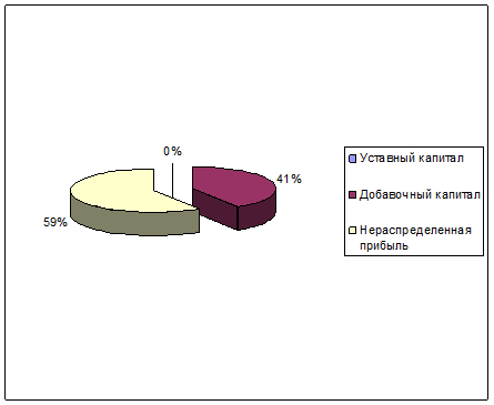 Рис. 2. Структура собственного капитала ООО «Восток - Л» в 2005 г. В структуре собственного капитала предприятия в 2005 г. наибольшую долю занимала нераспределенная прибыль, менее 1% занимал уставный капитал.