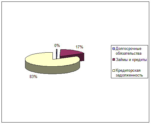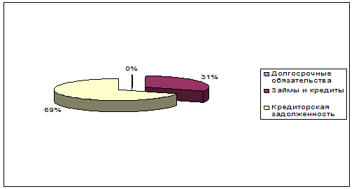Рис. 4. Структура заемного капитала ООО «Восток - Л» в 2005 г. В структуре заемного капитала предприятия 69% занимает кредиторская задолженность, примерно третью часть его составляют займы и кредиты. Долгосрочные обязательства представлены отложенными налоговыми обязательствами и составляют незначительную долю заемного капитала предприятия.