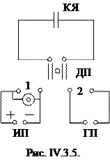 пропускается ток. Затем ДП переводился в положение 2. При этом через ГП при отсутствии источника питания по цепи течет ток разряда, начинающийся с пикового значения Im
