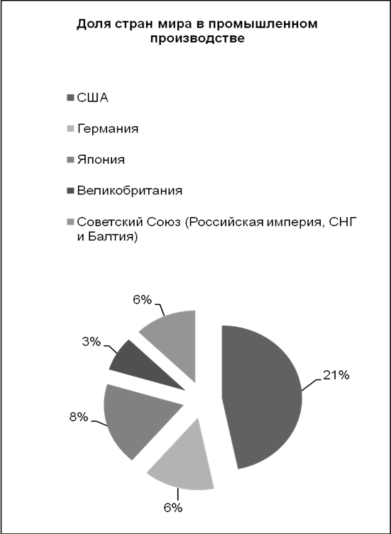 Построить круговую диаграмму, отражающую долю стран мира в промышленном производстве за 2000 год.