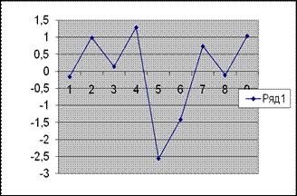 d=2,03383658 d'=4–2,03383658=1,96616342 Критические значения статистики: d1 kp =1,08 и d2 kp =1,36; dи d'>1,36 поэтому уровни остатков не зависимы · Условие соответствия ряда остатков нормальному закону распределения. Рассчитаем RS - критерий:
