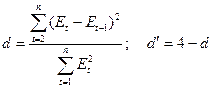 Так как для данной модели р = 6 > 2, то условие выполнено. · Условие наличия (отсутствия) автокорреляции в отклонениях. Рассчитаем статистику Дарбина-Уотсона ( d- статистику) по формулам: