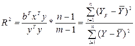 де Rkj – алгебраїчне доповнення до (j,k)-го елемента кореляційної матриці r; Rkk та Rjj – відповідні діагональні елементи цієї матриці. За вимогами роботи треба розрахувати коефіцієнт множинної кореляції R: R = де R2 – коефіцієнт детермінації;