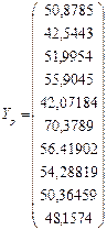 де Y– спостеріганні значення фактора (вихідні дані), n – число спостережень, m – число оцінюваних параметрів. Нульова гіпотеза для перевірки значущості моделі: Н0 : b0 = b1 = …… = bm = 0. Проведемо необхідні попередні розрахунки. Використовуючи вихідну матрицю Х і побудовану модель, отримуємо розрахункові Yp: Yp = X*BT і залишки е = Y - Yp :