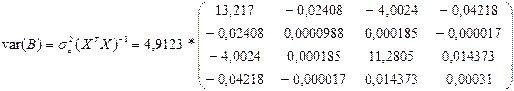 = Де В – матриця оцінок параметрів моделі. Його стандартна похибка складає