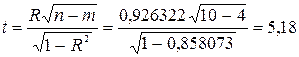 Його значущість перевіряється також за допомогою t-статистики (нульова гіпотеза – R незначущо відрізняється від 0). В цьому випадку розрахункове значення крітерію визначається за формулою: