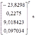 Sb = Розрахункове значення t-статистики отримуємо для кожного коефіцієнта: tb0 = b0 / Sb0 = -23,83/ 17,85895 = -1,33433 і т. п.